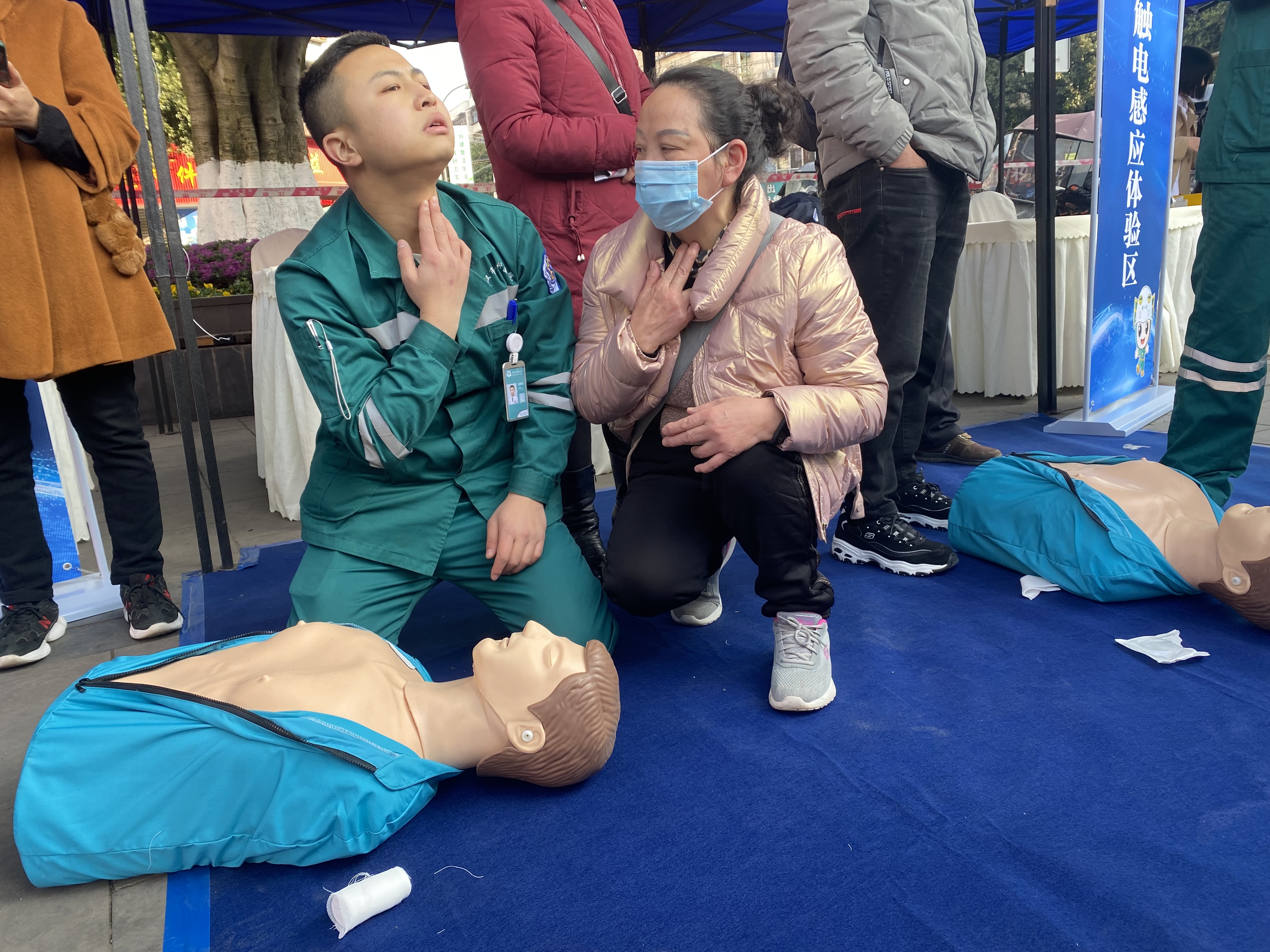 活动现场,前来参加春季招聘会的广大群众反响热烈,对急救知识表达出了浓厚的兴趣,在急救团队的带领下纷纷上场实操并提出自己的疑问和见解。老师们手把手教学,面对面授课,让他们真正掌握了心肺复苏的救护技巧和操作流程。整个培训生动形象、深入浅出,现场气氛非常活跃。